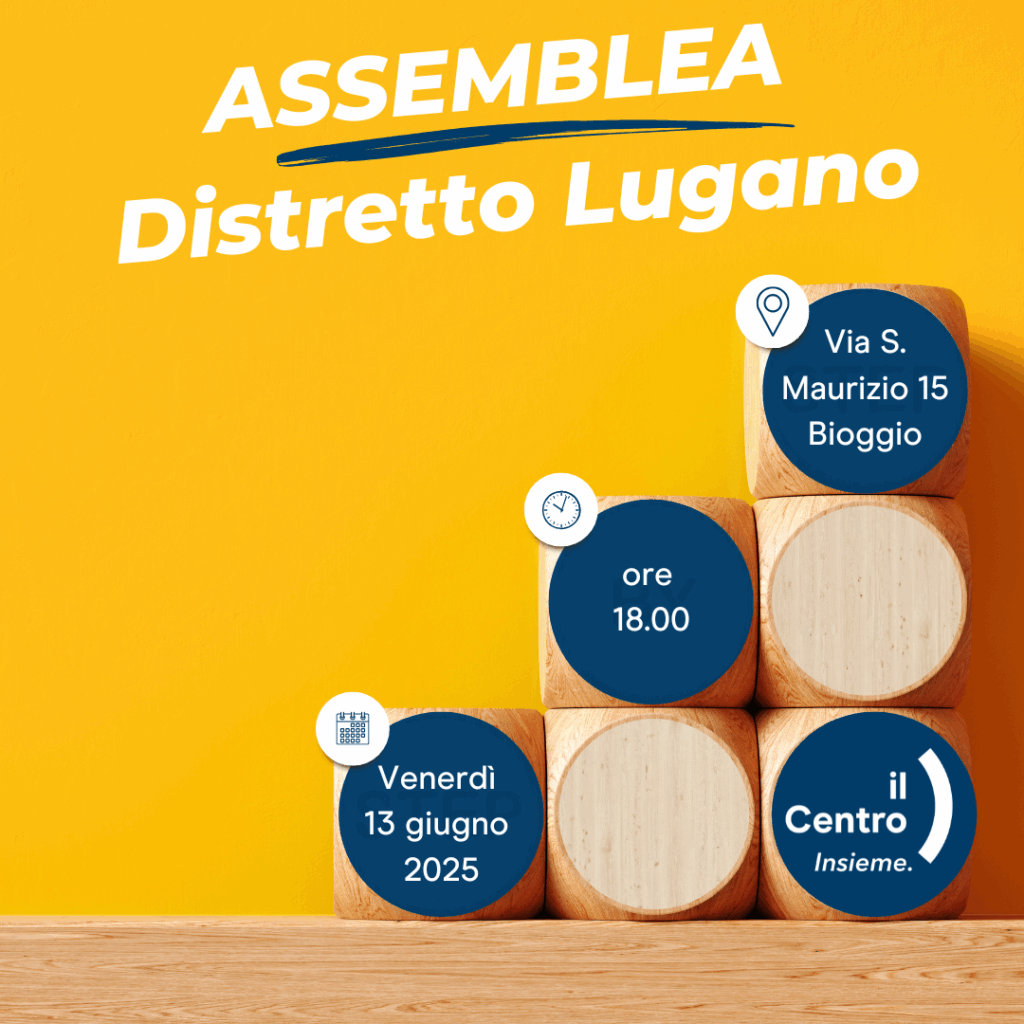 Il prossimo venerdì 13 giugno  si terrà l’Assemblea del distretto di Lugano, alle 18.00 al Salone Centro San Maurizio a Bioggio (Via San Maurizio 15).